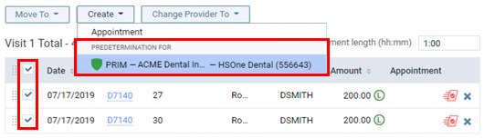 Select the checkboxes of the procedures in a visit that you want to include on a predetermination.