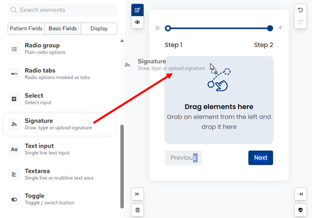 You can drag a Basic Fields element, such as Signature, to the form.
