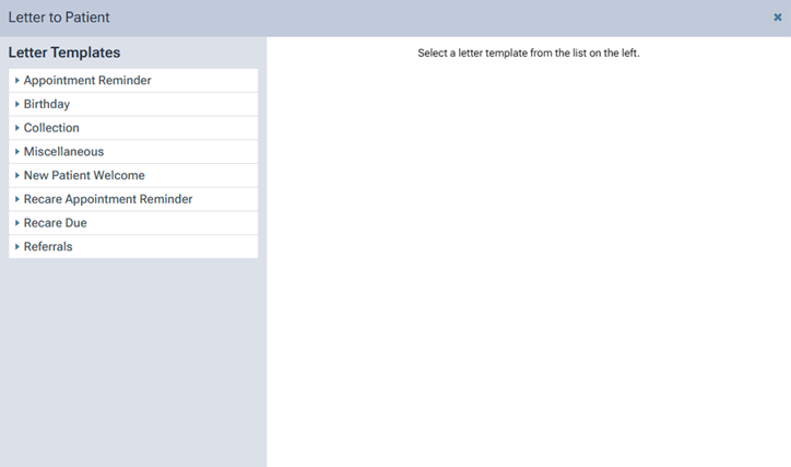 On the Patient menu, under General, click (or tap) Letter to Patient.