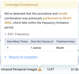 appears next to the procedure's description. You can click (or tap) the icon to view the applicable coverage exception.