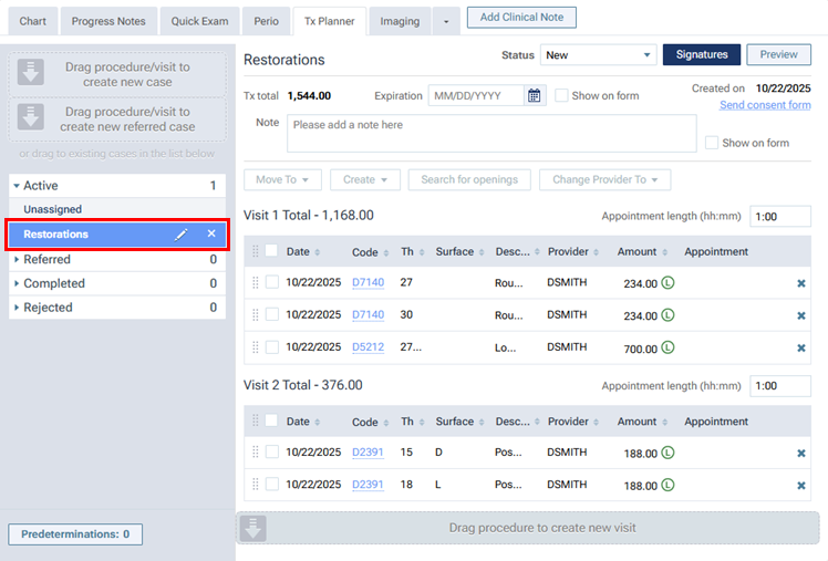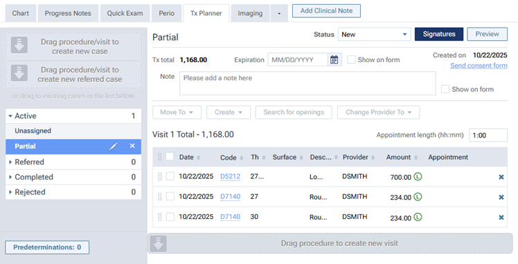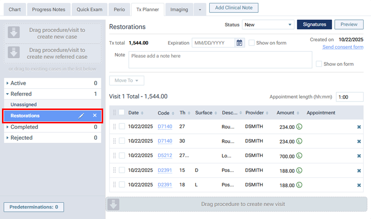 Using the procedures that have been treatment-planned or referred, you can create a custom treatment plan for a patient.