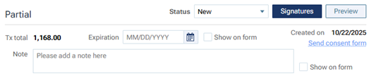 Enter a Note regarding the case. The note can be up to 250 characters long. To show the note when presenting the case, on the printed copy of the case, and on a consent form, select the Show on form checkbox.