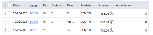 Note: Changing the provider and amount requires the "Edit patient procedure" and "Edit patient procedure amount" security rights.
