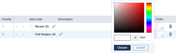 You can customize how Dentrix Ascend displays appointments on the Calendar page. You can assign colors to types of procedures to quickly identify appointments by appointment type. Additionally, you can customize the layout of appointment tiles to display provider colors only, procedure colors only, or both. Each location can have different appointment color and layout settings.