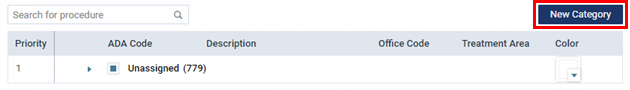Assign procedures to a category - In the Search for procedure box, begin typing an ADA code or a procedure description, continue typing as needed to narrow the results, and then select the checkboxes of the procedures that you want to assign to the same category.