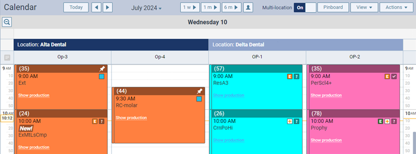With the multi-location view active, you can change and filter the view of the schedule to have it display appointments and events across locations in your organization to suit your preferences. Multi-location view settings are saved even after you log off.
