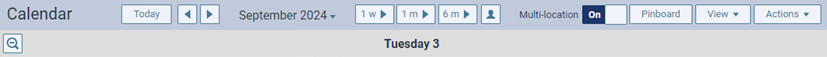 Note: If you navigate away from the schedule while using the multi-location view and then return to the schedule, the Multi-location View switch remains On by default. However, if you log out and then back in, the Multi-location View switch is set to Off by default.