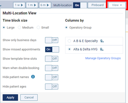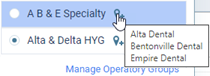 To add, edit, or delete operatory groups as needed, click the Manage Operatory Groups link.