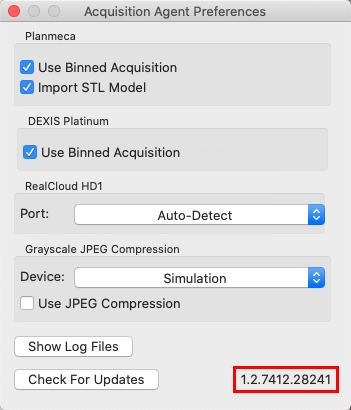 To view the version of the acquisition agent that you are using, click the Acquisition Agent icon on the dock, expand the Acquisition Agent menu, and then click Preferences. The version number appears; make sure that it meets or exceeds the minimum version number listed in the "Minimum Versions" section.