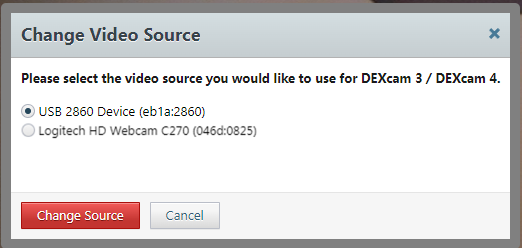 Select the option that corresponds to the correct camera, and then click Change Source.