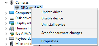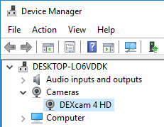Expand the Cameras category, and make sure that the camera is listed.