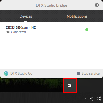 In the system tray, click the DTX Studio Bridge icon to open the DTX Studio Bridge window.