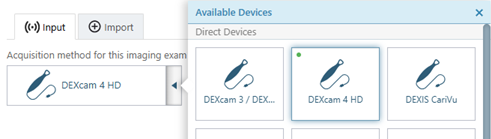 If the DEXcam 4 HD camera appears with a green dot and is available, it is ready for use with Dentrix Ascend Imaging; otherwise, refer to the "Troubleshooting" section.