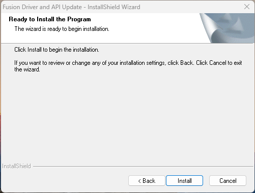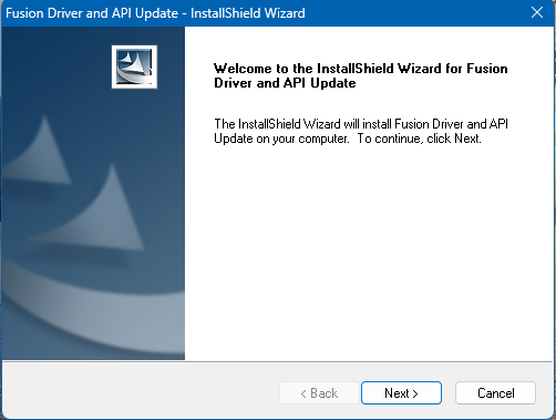 Start the installer (Fusion Driver and API Update.exe) as an administrator.