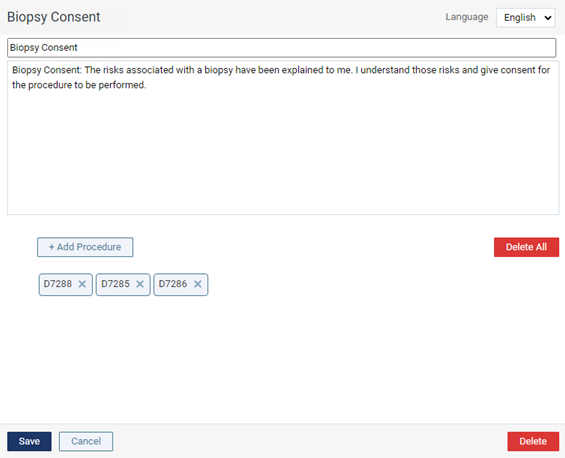 You can delete any custom treatment consent message that is no longer needed for a location in your organization.