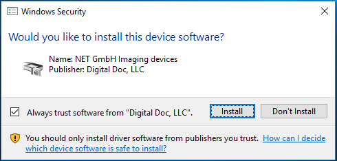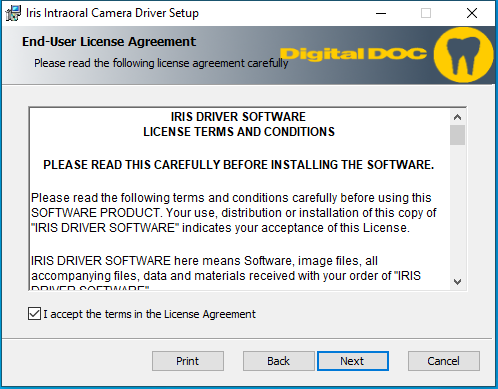 Start the Digital Doc IRIS driver installer as an administrator. (The installer for 64-bit Windows is IrisSetup_1.3.34.exe.)