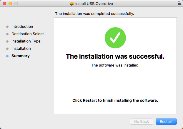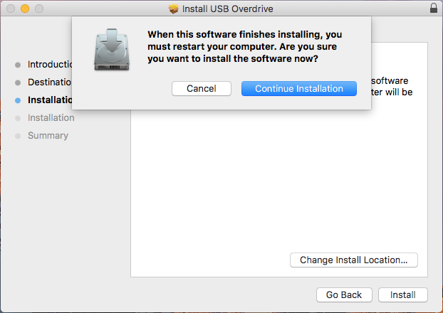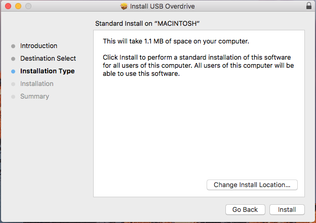 Open the contents of the installation disc, and then double-click the Install USB Overdrive installer package.