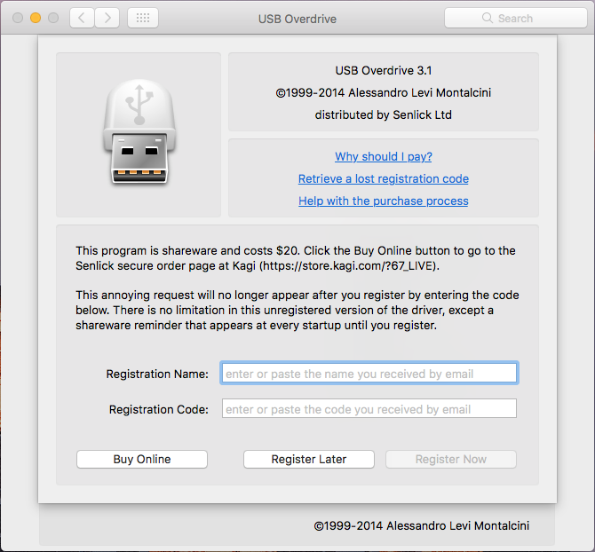 Note: If the dialog box does not appear automatically, click the Apple icon in the upper-left corner, and then navigate to System Preferences > USB Overdrive. -
