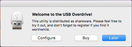 When the computer has rebooted, a Welcome dialog box from USB Overdrive appears. Click Configure.