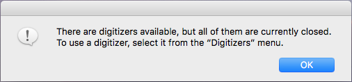 VideoGlide opens, and a message may appear and state that there are digitizers available but that all of them are currently closed. Click OK, and then select VideoGlide in the Digitizers menu at the top of the screen. The stream appears in the VideoGlide window.