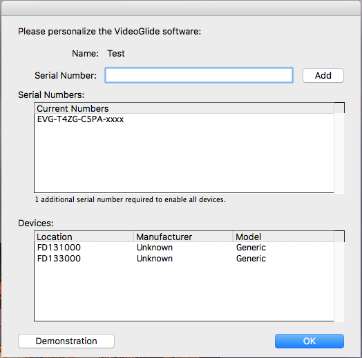 If the VideoGlide software prompts you for a serial number, enter the VideoGlide serial number.