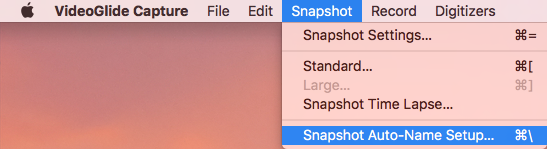 On the Snapshot menu, select Snapshot Auto-Name Setup.