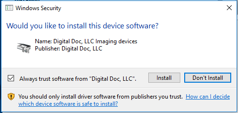 Note: If you did not receive a driver disk with your device, contact Digital Doc customer support for the latest driver installer. As of writing this guide, the latest driver installer is Setup_Iris_HD_3.4.181015.exe.
