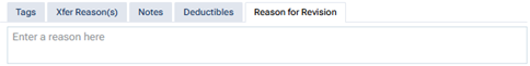 If you have changed the Date, Adjustment Type, or Adjustment amounts, the Reason for Revision tab is available. Select the tab. In the box provided, enter the reason for the changes.