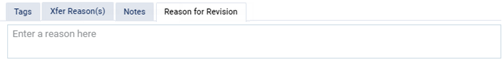 If you have changed the Transaction date, Amount, Check #, Reference #, Bank/branch #, Applied amounts, or Tags, the Reason for Revision tab is available. Select the tab. In the box provided, enter the reason for the change.