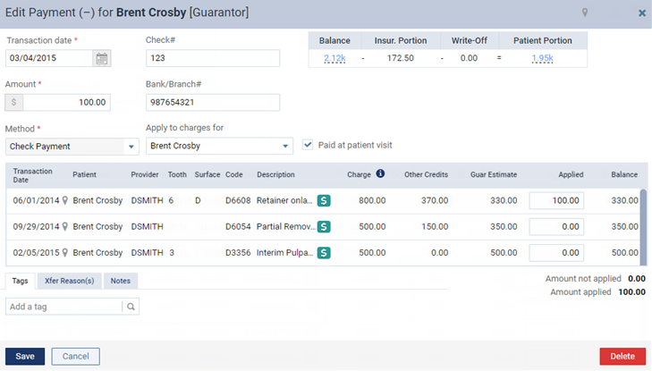 Editing patient payments