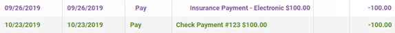 Paid at patient visit - The payment was made at the office when services were rendered.