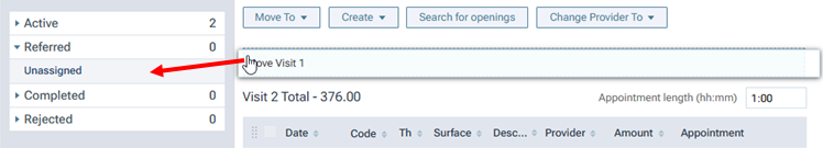 Note: Moving a procedure from the "Referred - Unassigned" to the "Active - Unassigned" category changes the status of that procedure from "Referred" to "Tx Plan."