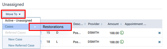 Note: Moving a procedure from an active case to the "Referred - Unassigned" category changes the status of that procedure from "Tx Plan" to "Referred."