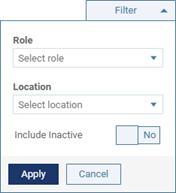To filter the user accounts by role, location, and/or status, use the Filter menu.