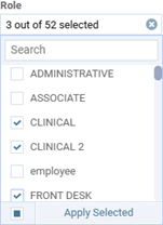 To view only the user accounts that have been assigned to certain user roles, on the Role list, select the checkbox of each of those roles, and then click Apply Selected.