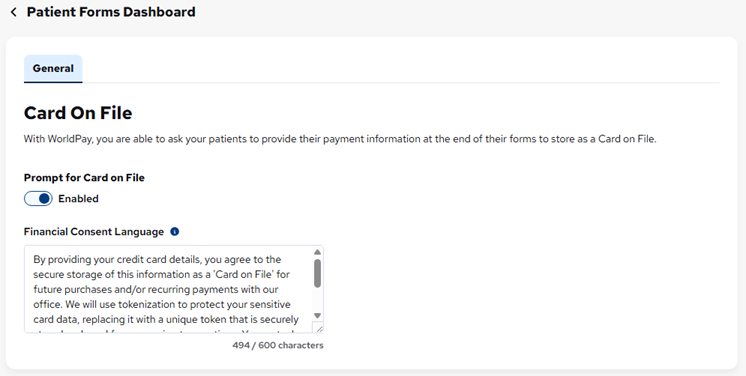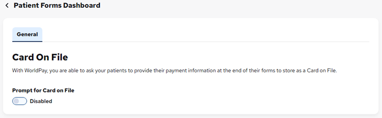 Enabling or disabling the card-on-file option for patient forms