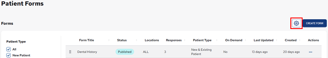 Click (or tap) the Settings button (gear icon) next to the Create Form button.