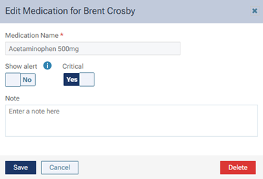 In the Medical Alerts/Medications section of a patient's Patient Information page, do one of the following: