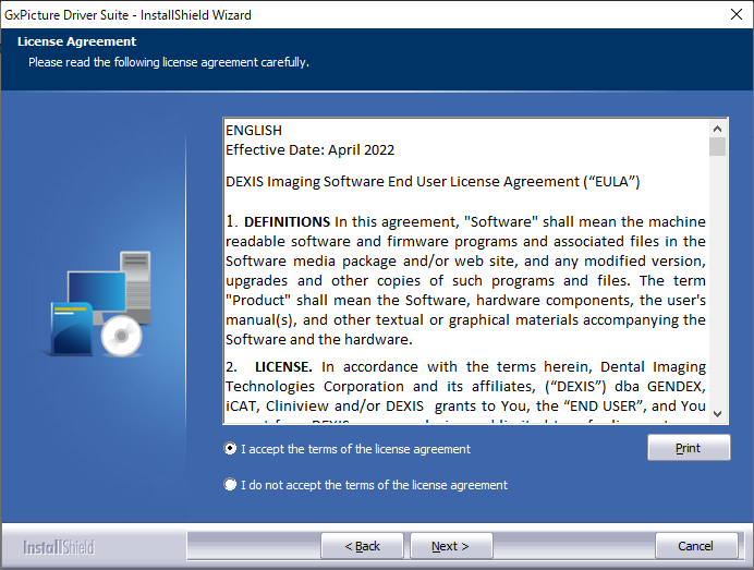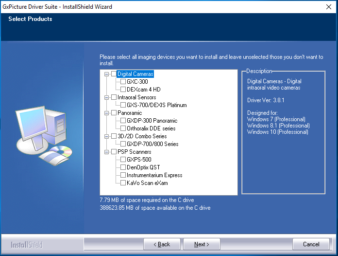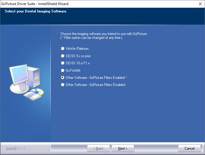 After DEXIS Software Manager is installed, the GxPicture Driver Suite - InstallShield Wizard starts.