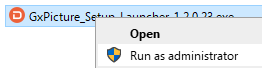 Right-click GxPicture_Setup_Launcher_[xxxx].exe, and then select Run as administrator.
