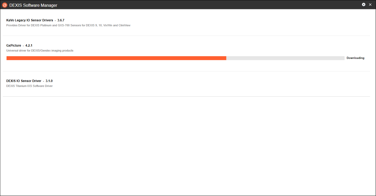 After DEXIS Software Manager is installed, drivers are downloaded automatically.