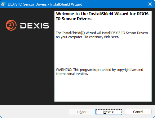 The DEXIS IO Sensor Drivers - InstallShield Wizard starts.