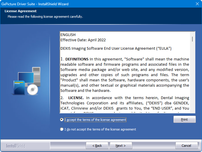 Prior to the installation of GxPicture, the drivers for the GxPicture device must be installed; otherwise, the device will not be listed as an option in the GxPicture installer.