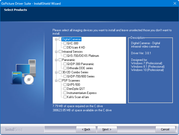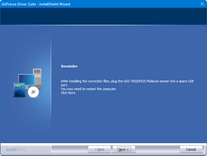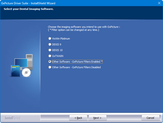 Dentrix Ascend Imaging supports the Gendex GXS-700 sensors directly without the need for Gendex GxPicture to be installed. If GxPicture has been installed previously with the option selected for supporting the GXS-700 sensors, reconfigure by running the GxPicture installer again, and do not select the option to support GXS-700 sensors.