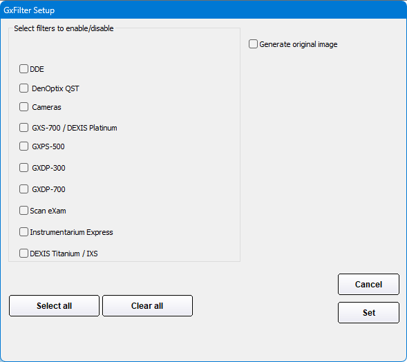 Select the checkboxes of the devices for which you want to enable GxFilters, and then click Set.
