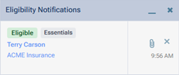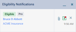 To open the patient's eligibility document on a new browser tab, click (or tap) the paperclip icon.