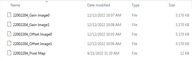 The following image shows what the correction files for a sensor with serial number "22002204" look like.