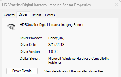 Right-click HDR3xx/4xx Digital Intraoral Imaging Sensor, and then select Properties.