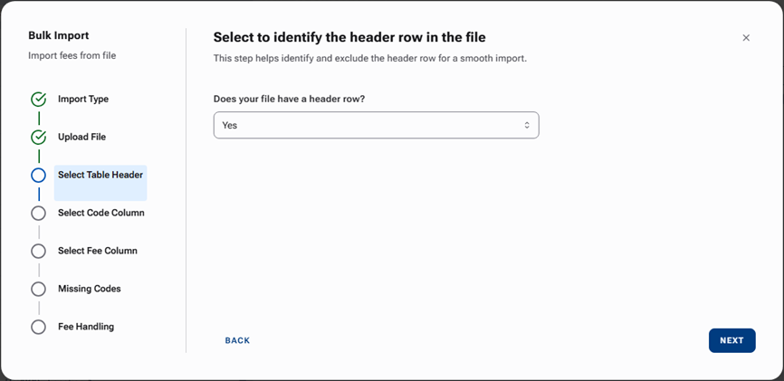 Select the column of your .csv file that contains the fees to be imported.