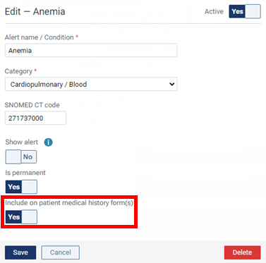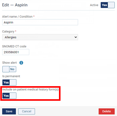 You can flag the problems and allergies that you want to have available for patients to select on any patient forms that include the "Medical Conditions" and "Allergies" elements.
